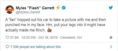 Read the full story at this link. https://www.espn.com/nfl/story/_/id/27861371/browns-myles-garrett-says-fan-punched-face-taking-picture